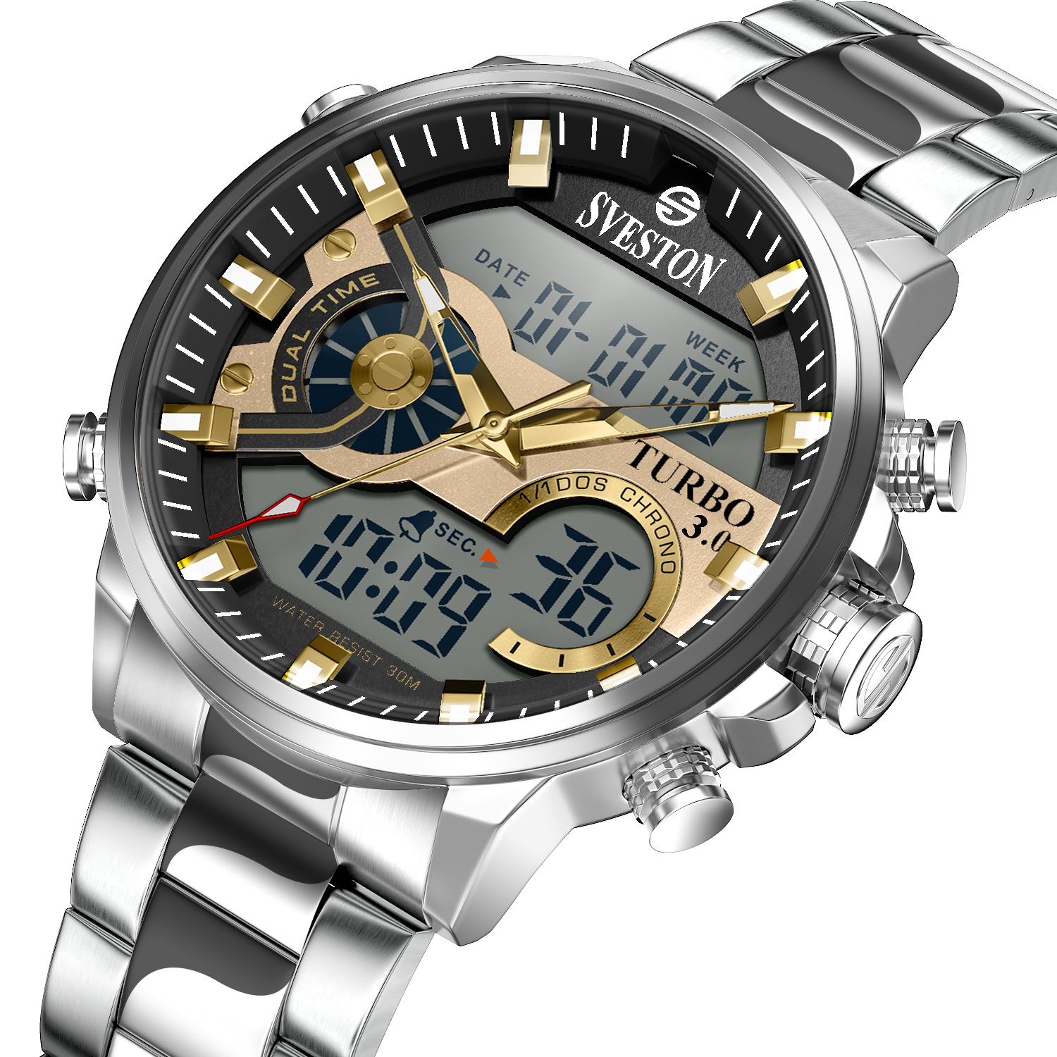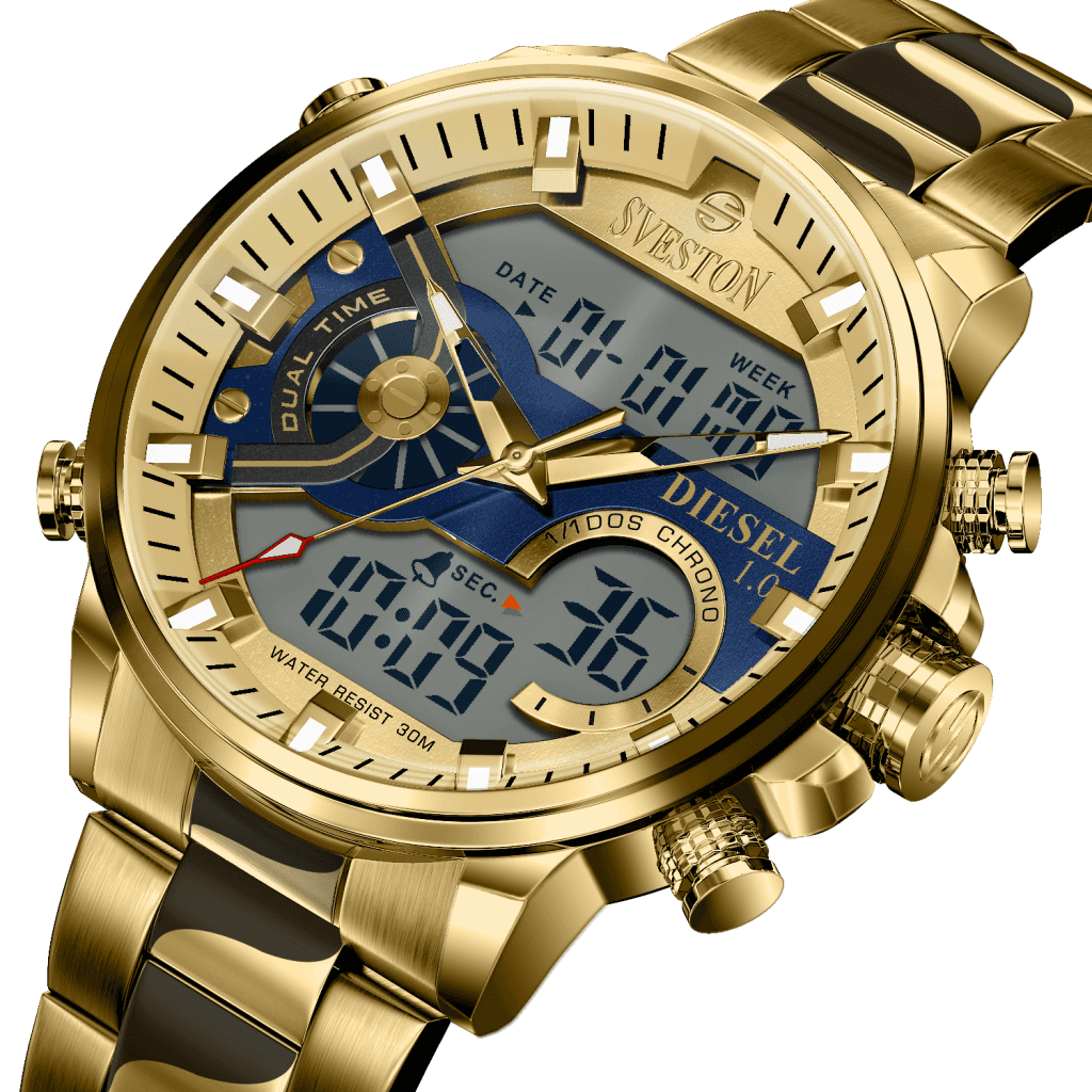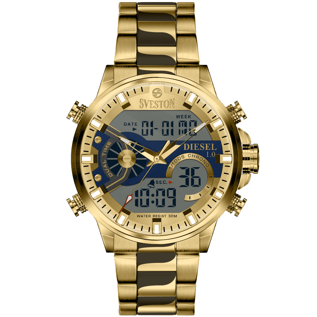 Sveston Diesel Is a Gents Stainless Steel Watch Having 40mm Dial and Comes with Stainless Steel Watch Case With Dual Time.