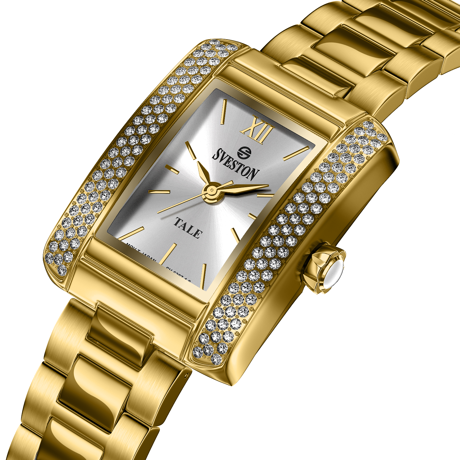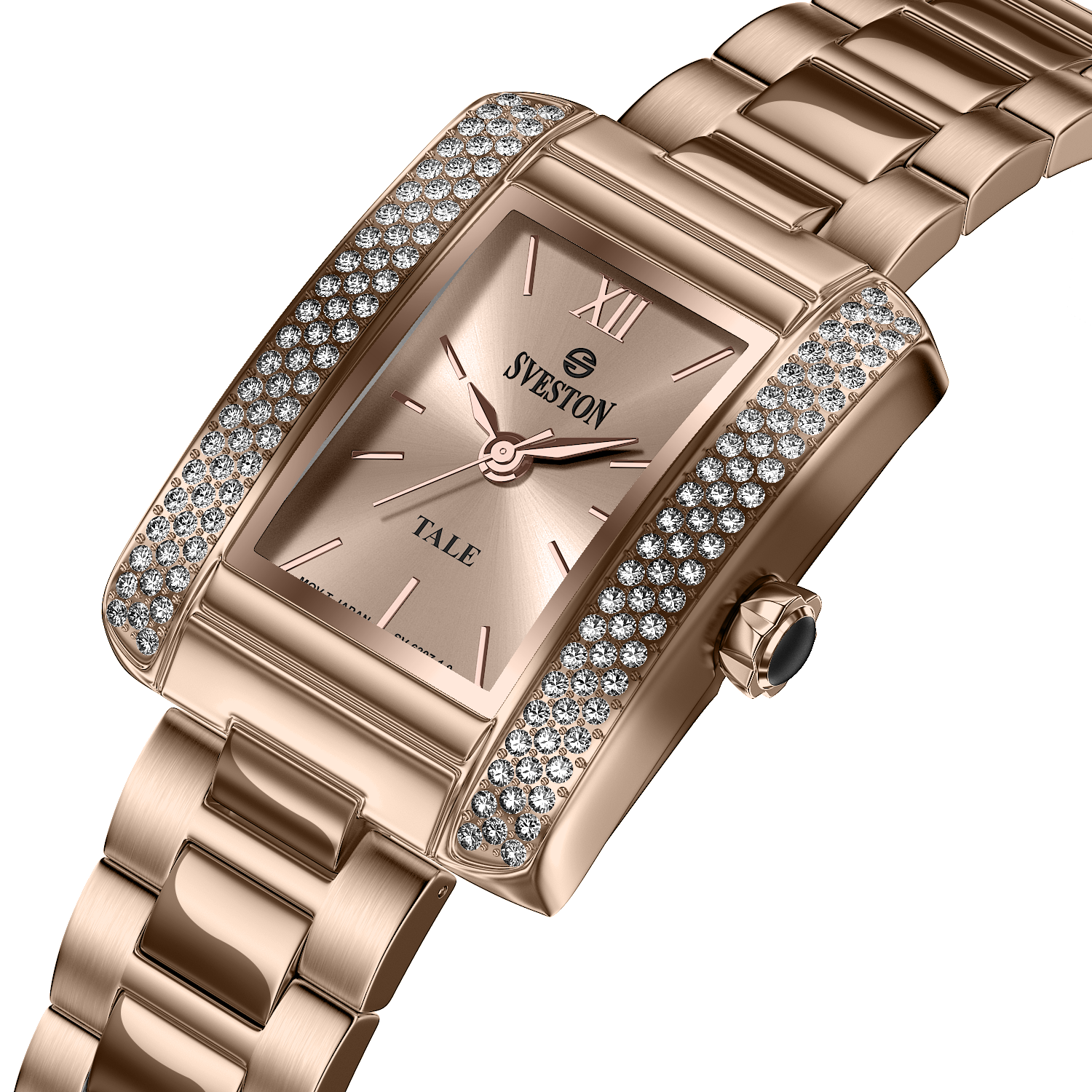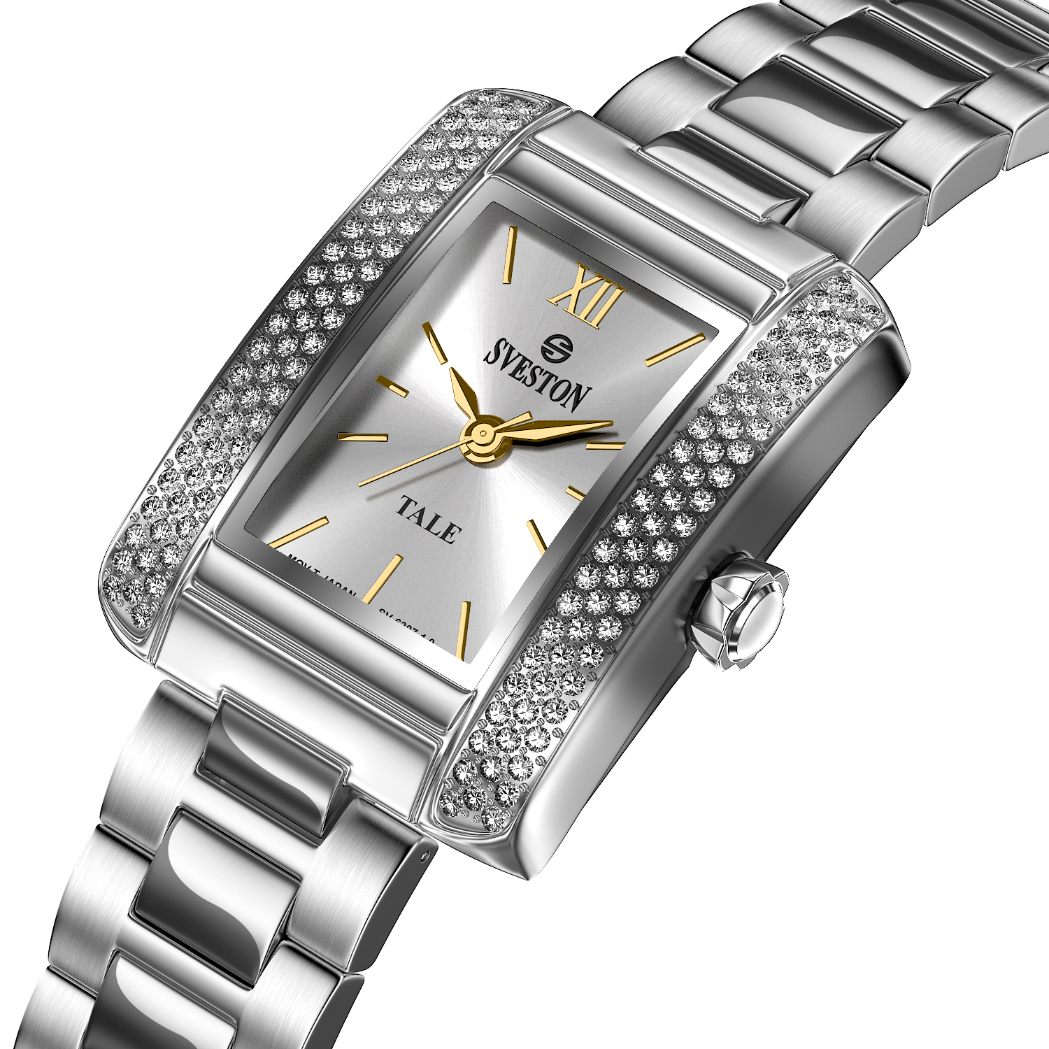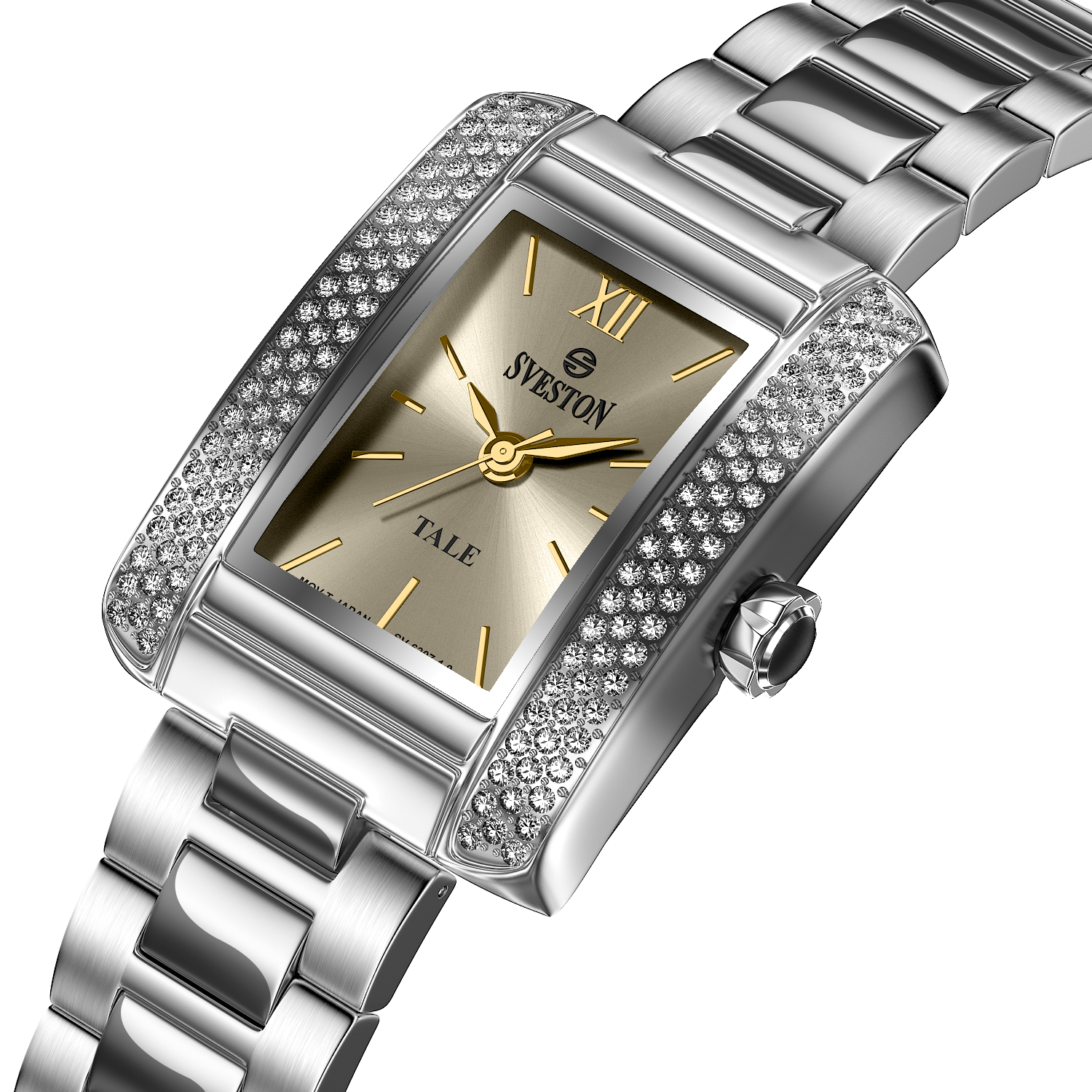 Sveston Tale 1.0 is a feminine bracelet watch featuring an 19mm dial, elegantly presented in a luxury watch case.