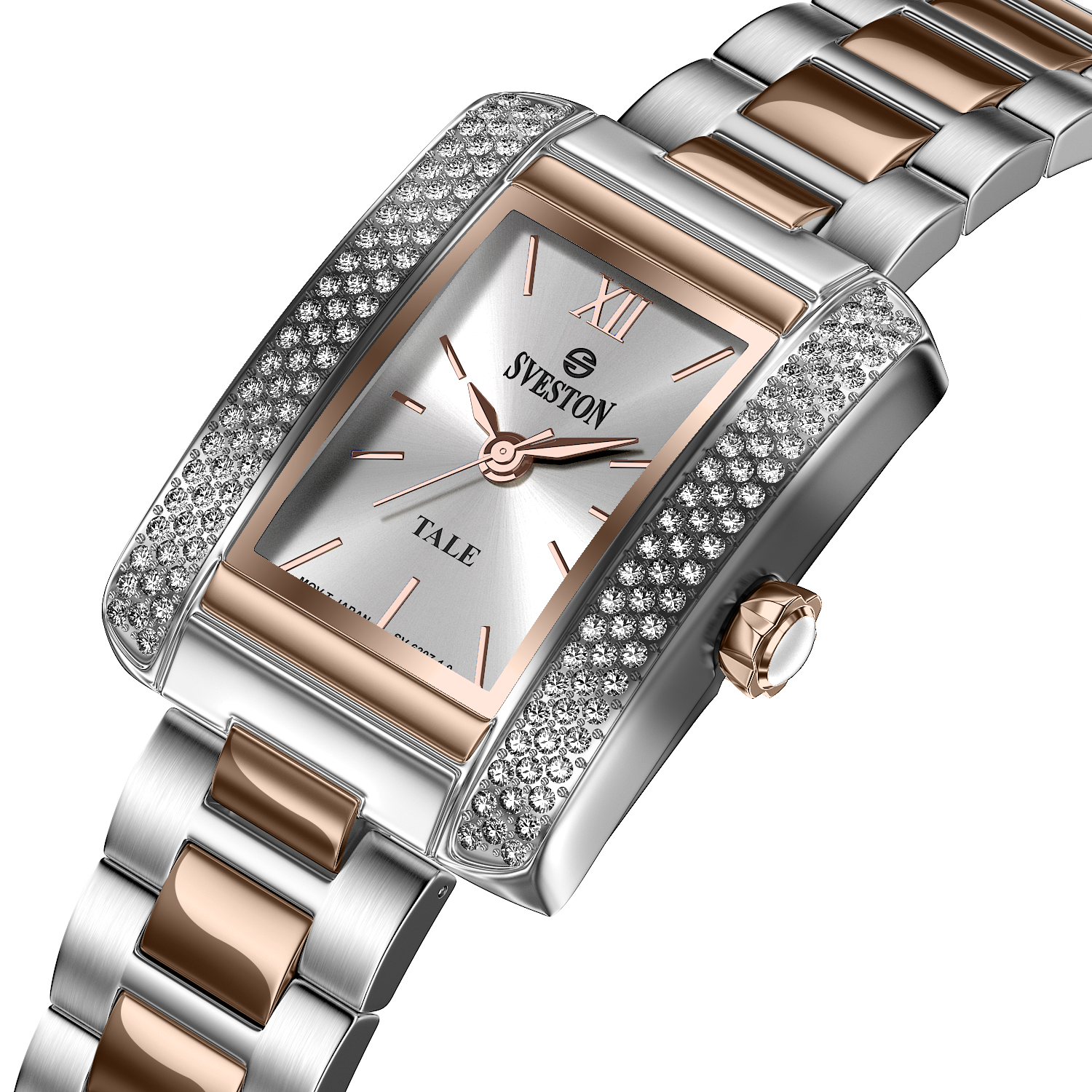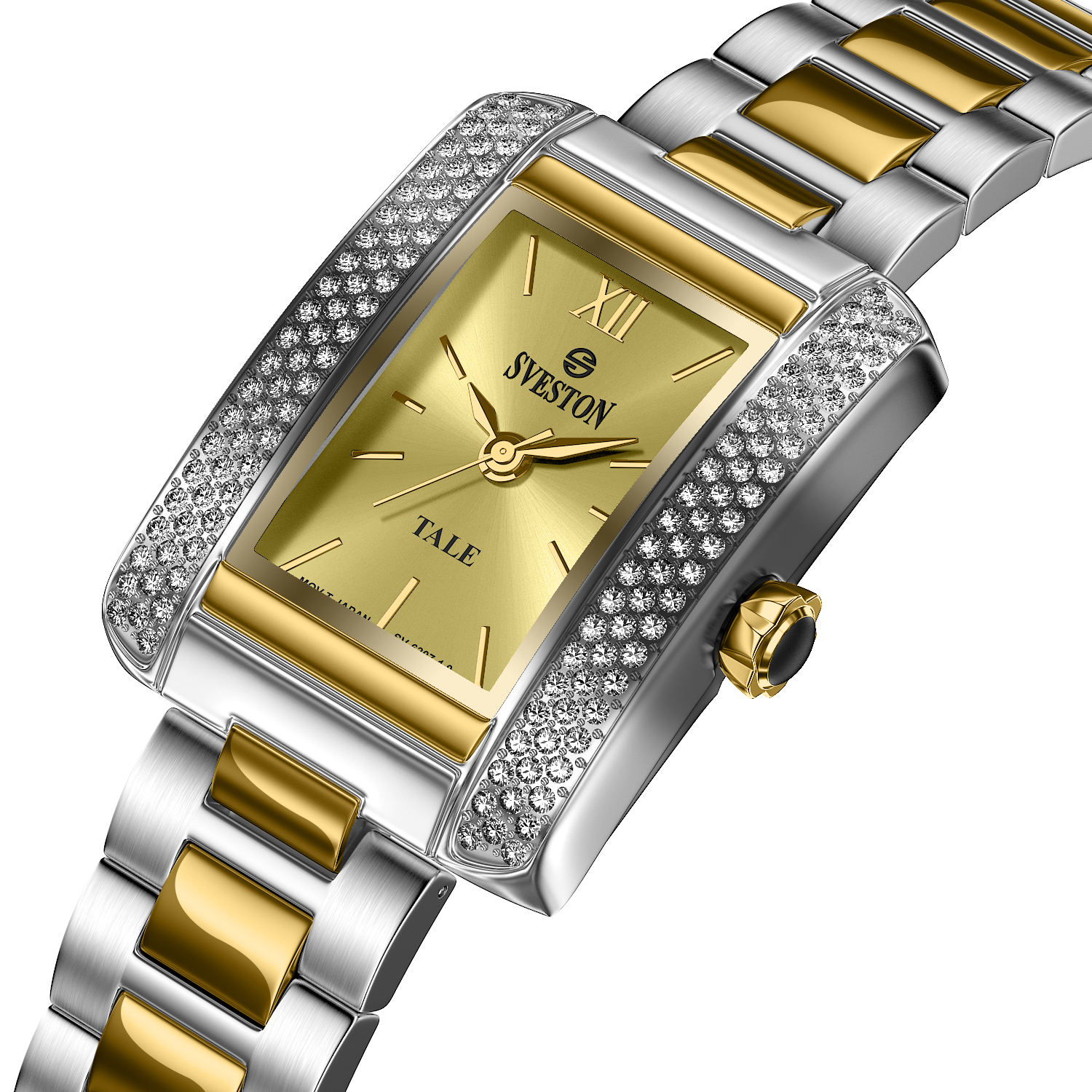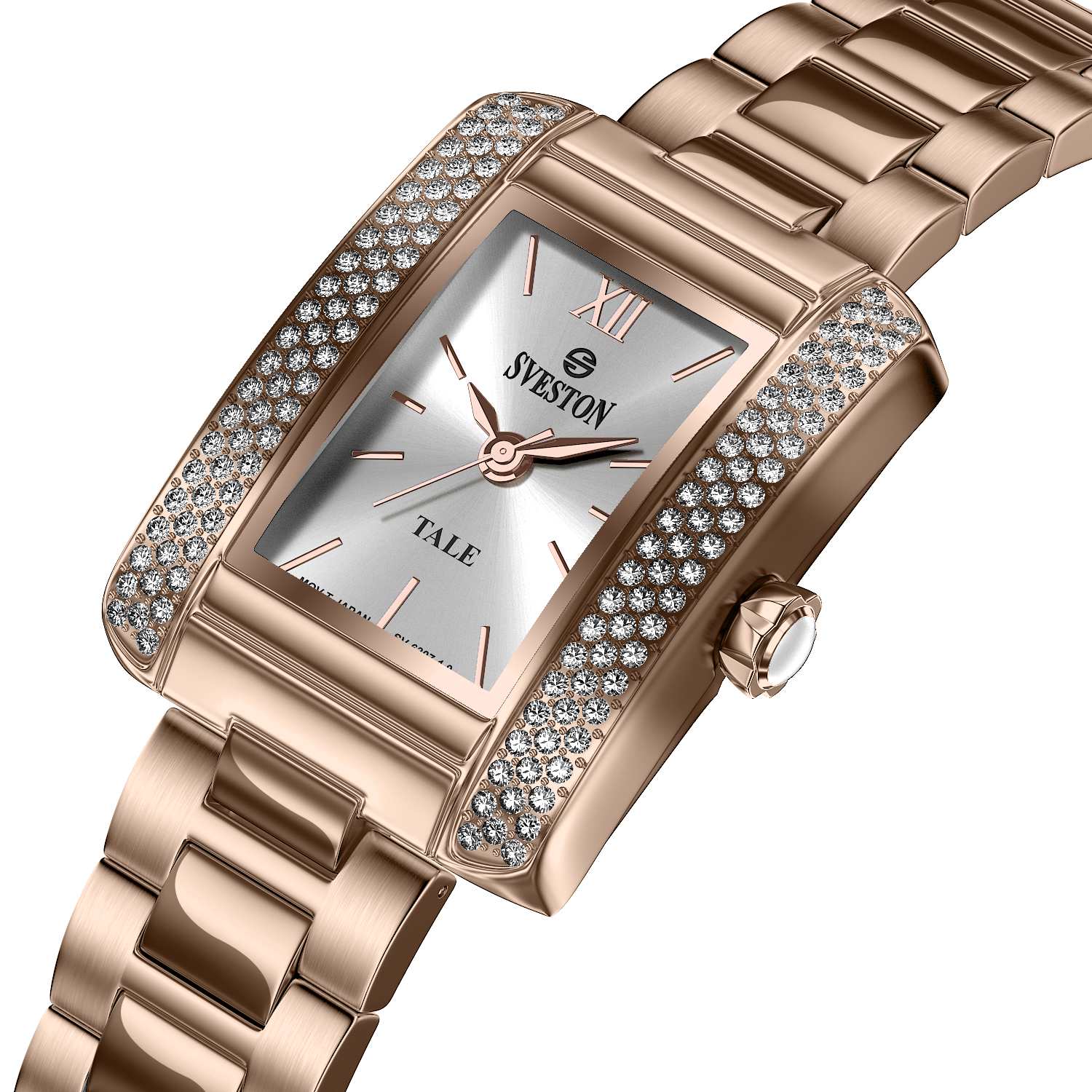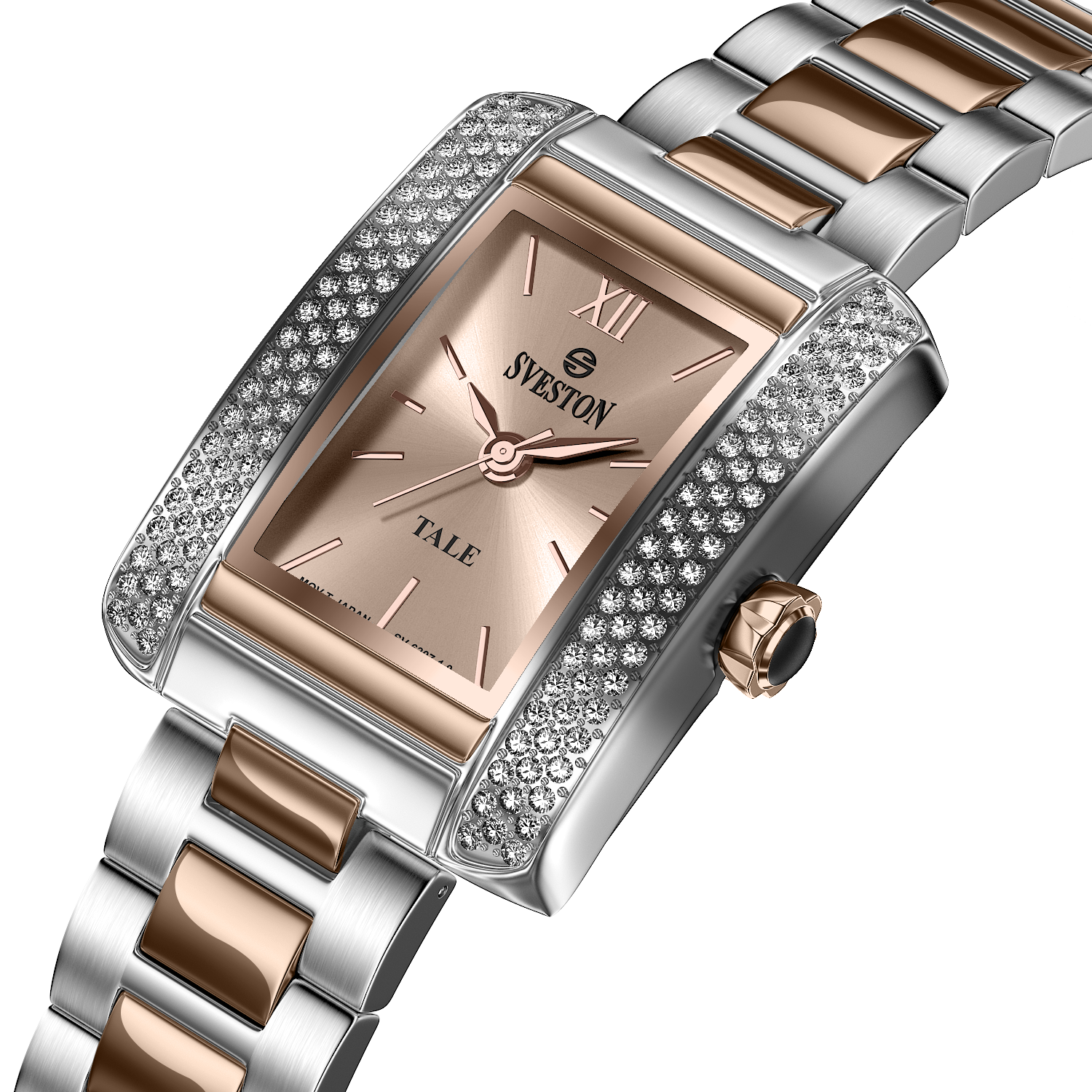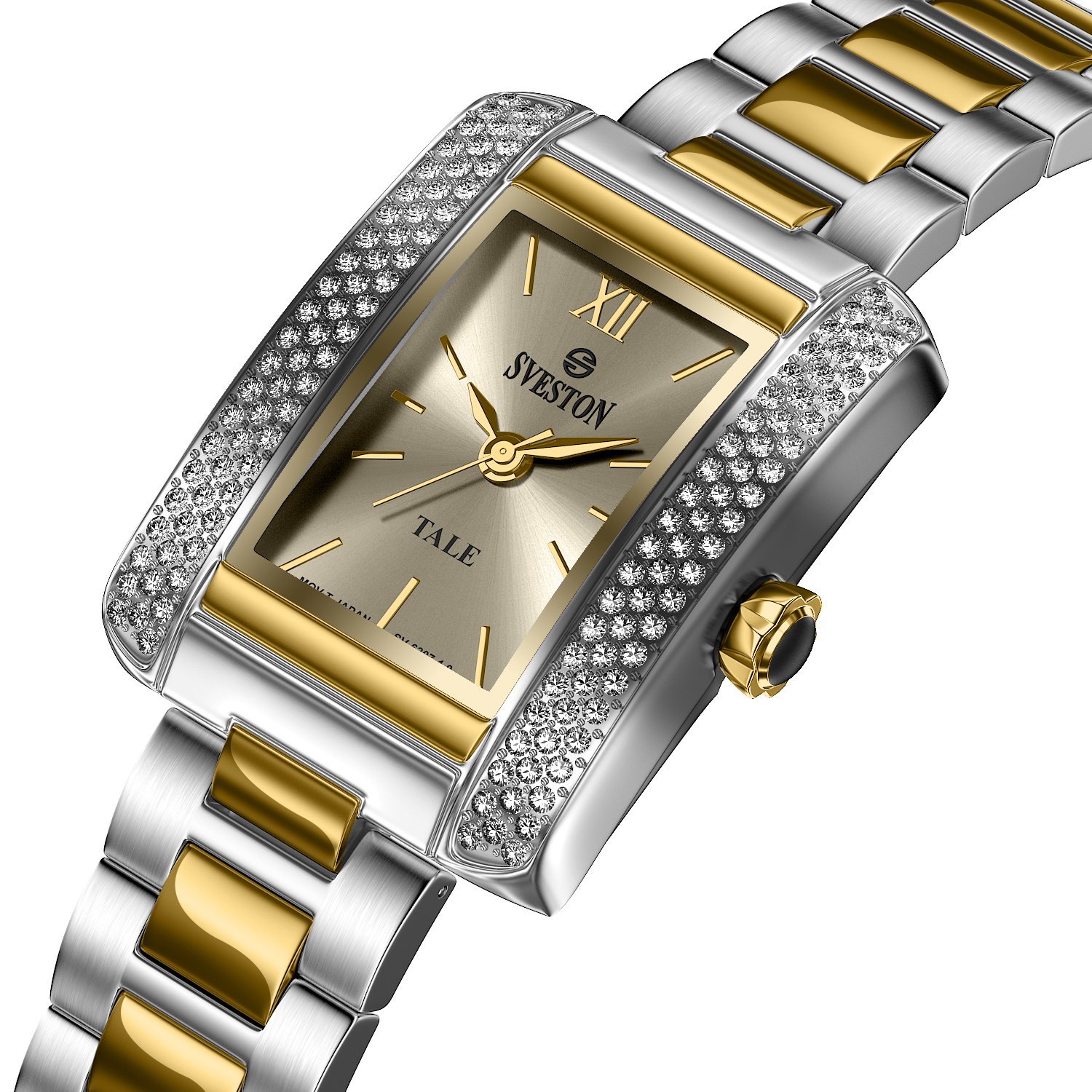 Sveston Tale 1.0 is a feminine bracelet watch featuring an 19mm dial, elegantly presented in a luxury watch case.